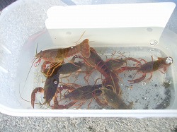 数はイッパイ釣れますがサイズはミニミニです。 マッカチンもいいんですが可愛いです。 アメリカザリガニは特定外来生物指定では無いので移動、飼育が可能です。 環境の論議ももちろん大切ですが子供達の人間育成という点からもザリは指定されていないのかなぁ。。。