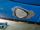 硬化した後に通常と同じ板金作業でパテで綺麗に仕上げます。 |