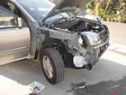 ぶつけて凹んだバンバーとフェンダーを取り外します。普段見慣れた車の内部を見れるのは板金屋ならではの楽しみですが車にとっては可哀想な感じがします。綺麗に直すよ〜。 | |