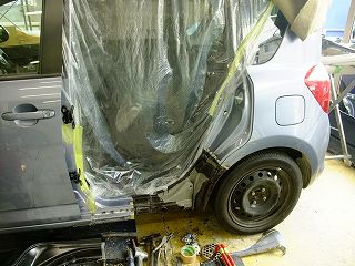 ステップ部は新品部品を取り寄せしてカット交換です。修理範囲をなるべく最小限に留めます。 インナーパネルも一部交換します。 |