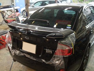 マッチングを見ます。横幅は良さそうです。旧スポイラーの取付穴が一箇所見えます。 |