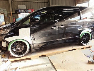 ヴェルファイア〜 すでにフルエアロ、マフラー、車高調、ブラックアウト、ライト加工等、かなり「完成」といえるところまで手を入れられた車となっています。 |