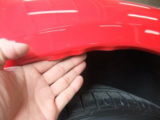 ついでと言っては何ですがフロントフェンダーの板金も。 タイヤが干渉してミミがヨレヨレです。 |